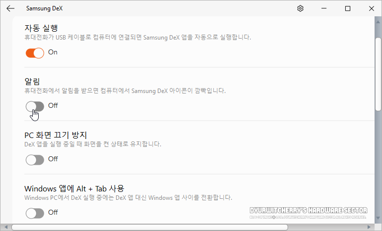*SAMSUNG DeX 휴대전화 알림 설정 해제 방법
