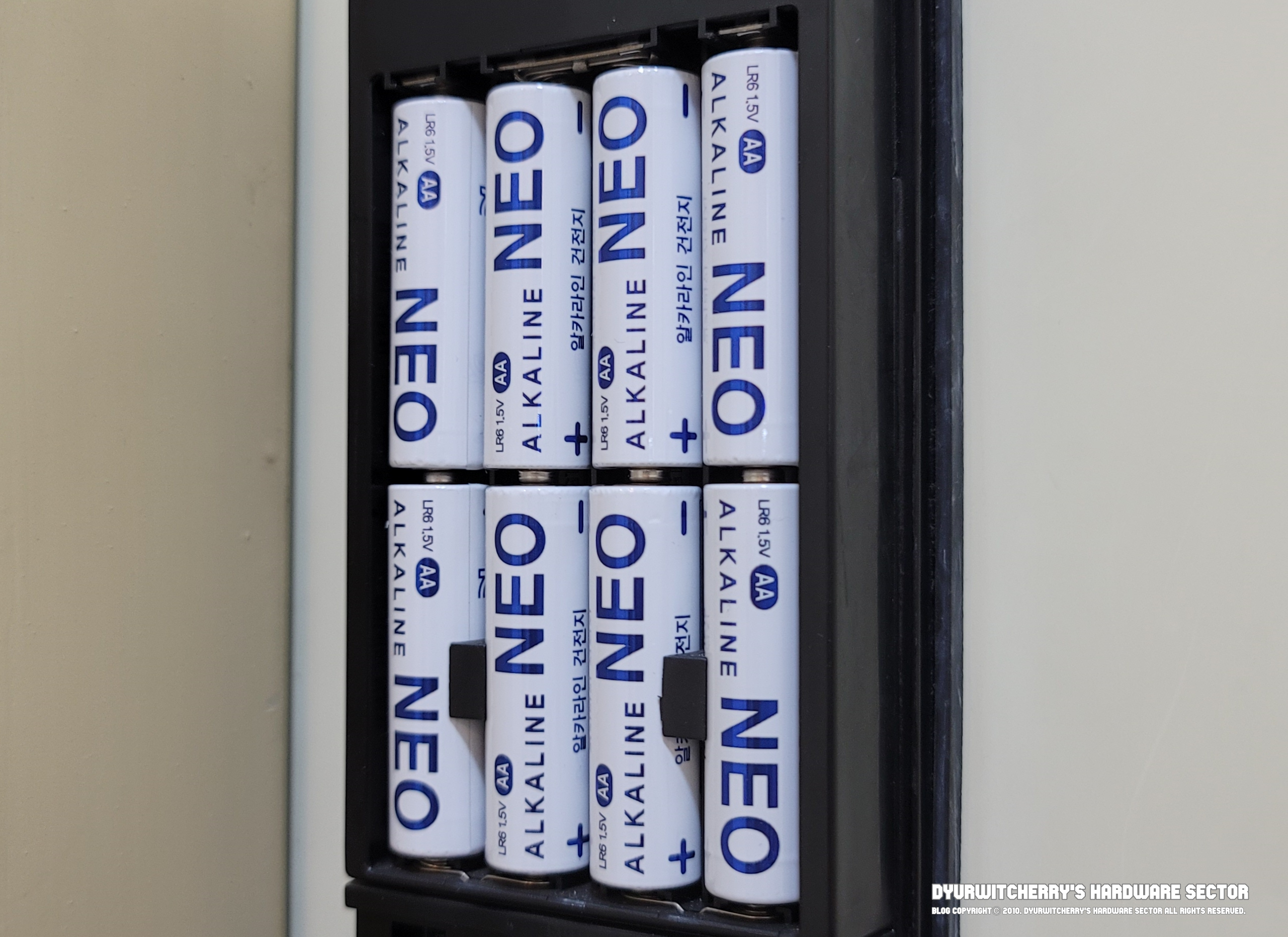 알카라인 건전지는 AA 규격 또는 AAA 규격의 에너자이저(Energizer)와 듀라셀(Duracell) 그리고 벡셀(Bexel) 제품을 많이 사용하는데, 가격은 Duracell → Energizer → Bexel → NEO 순으로 가격이 비싼 듀라셀과 국산 제품인 벡셀 등을 하용하다가 지금은 가격이 저럼한 아성 다이소의 네오(NEO) 고전력 기기용 제품을 사용하고 있습니다.