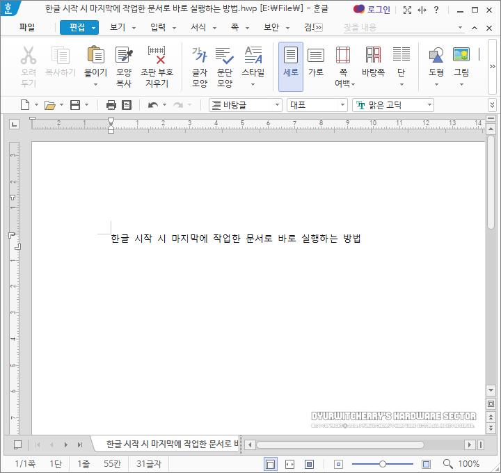*한글 시작 시 마지막에 작업한 문서로 바로 실행 방법