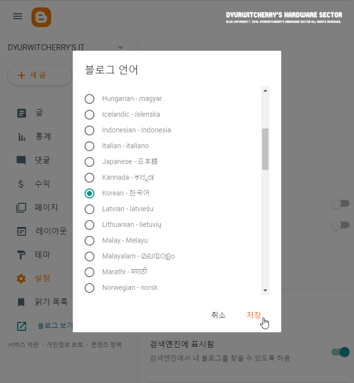 *Blogger How to change the default language settings to Korean and English