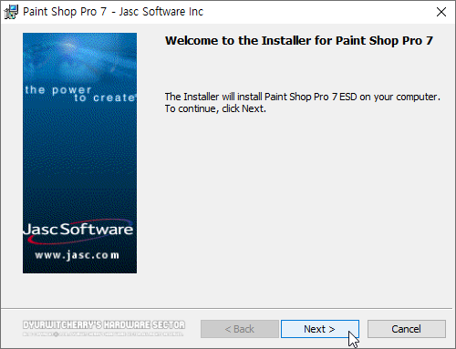 페인트 샵 프로 구버전을 Windows 10 Pro 64-bit 시스템에 설치는 약 20여년 전에 구입했던 JASC Paint Shop Pro 7.0 ESD 버전을 사용하기 위해 시도한 것으로, 바로 설치가 되지 않아 호환성 옵션을 변경하였고, 설치 후 JASC Paint Shop Pro 7 실행이나 메뉴 등의 사용에는 특별한 문제가 없어 보입니다.
