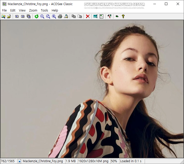 윈도우 10 프로 64비트 시스템에서 이미지 뷰어 프로그램 ACDSee 클래식 2.43 버전을 실행하여, '1920 × 1080' 사이즈의 FHD 이미지 *.PNG' 파일을 불러오기 한 화면으로, 사진 파일크기 약 1.9MB인 이미지도 Wondows 10의 기본 사진 뷰어 프로그램 보다 더 빠르게 구동이 됩니다. 참고로 ACDSee Classic의 상단 메뉴 설정에서 기본 옵션으로 적용되어 있는 'View - Controls >'에서 '✓ Foldder Tree(단축키: Ctrl + Shift + F)'와 '✓ Preview Area(단축키: Ctrl + Shift + F)'를 '✓' 체크 해제하고 사용하는 화면으로, 기본 연결 프로그램으로 설정하고 이미지 불러오기와 슬라이드 쇼 등 작업 시 보다 빠르게 실행 할 수 있습니다.
