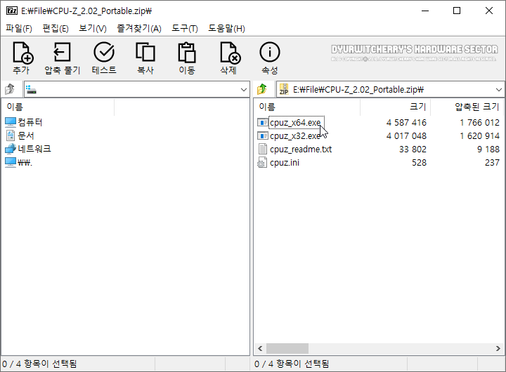 시스템 정보 확인 프로그램 CPU-Z 포터블 버전은 파일크기 약 3.24MB인 위 첨부파일 'CPU-Z 2.02 Portable.zip' 파일을 다운로드 받아 압축을 풀고, 32-bit Windows에서는 'cpuz_x32.exe', 64-bit Windows에서는 'cpuz_x64.exe' 파일을 실행하면, 설치 과정 없이 바로 사용 할 수 있습니다.