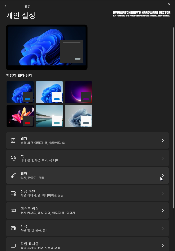 *윈도우 11 테마 변경하는 방법