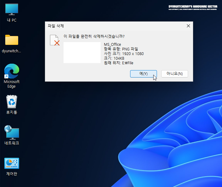 *윈도우 11 휴지통 파일 삭제 확인 메시지