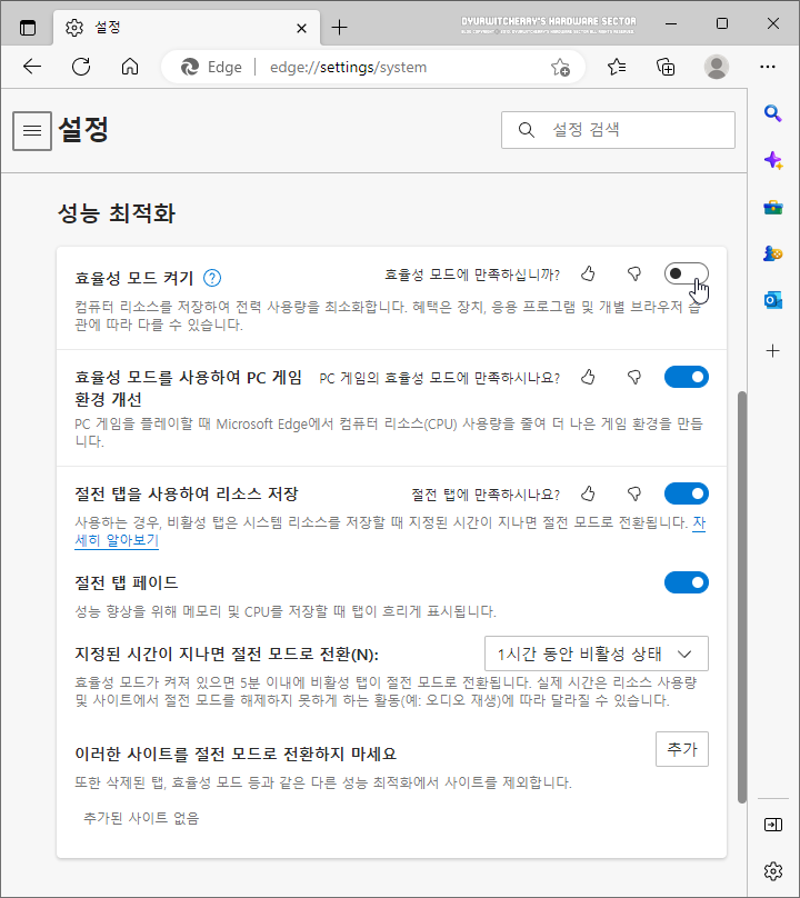 *마이크로소프트 엣지 브라우저 효율성 모드 켜기