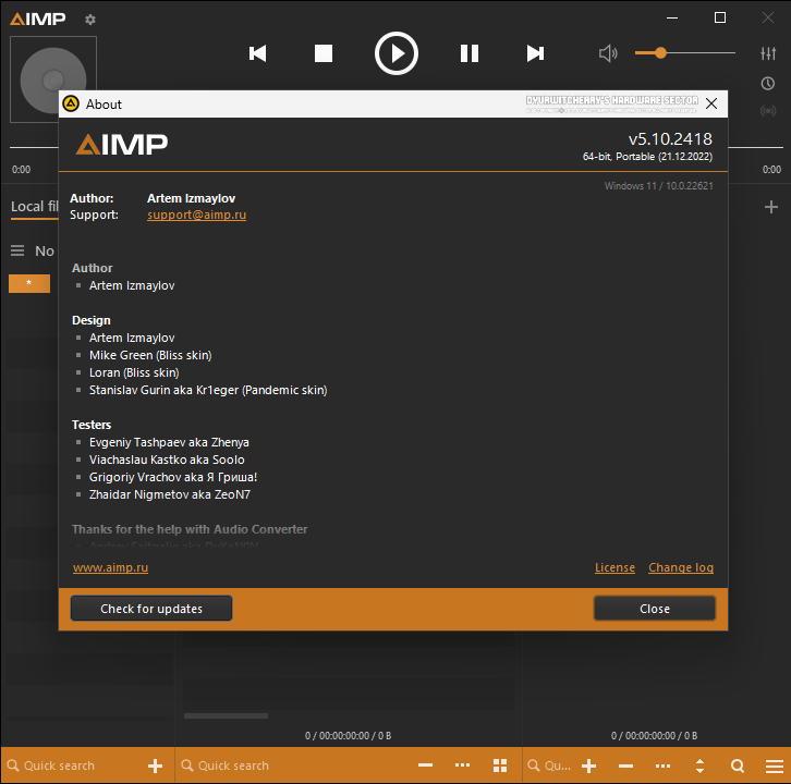 MP3 재생 프로그램 AIMP(Artem Izmaylov Media Player) 플레이어는 러시아의 Artem Izmaylov가 개발하여 2006년 08월 08일 AIMP Classic 1.5 버전을 공개 한 이후 포스팅 작성일 기준 최신 버전은 2022년 12월 21일 릴리즈 된 AIMP 5.10 Build 2418 버전 입니다. AIMP 플레이어는 AudioCD와 CDA, AIF와 AIFF, IT와 MP1, MP2와 MP3, MP3 Pro와 MOD, MTM과 MO3, OGG와 S3M, UMX와 WAV, WMA와 XM, FLAC와 ALAC, MP4와 M4A, MPC와 WV, APE와 MID, KAR과 RMI, AAC와 M3U, M3U8과 PLC, PLS와 CUE 오디오 파일 재생과 다양한 스킨을 지원하는 오디오 재생 프로그램으로 광고없이 누구나 사용할 수 있는 프리웨어로 배포 되고 있습니다.
