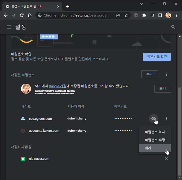 *크롬 비밀번호 삭제 및 수정하는 방법