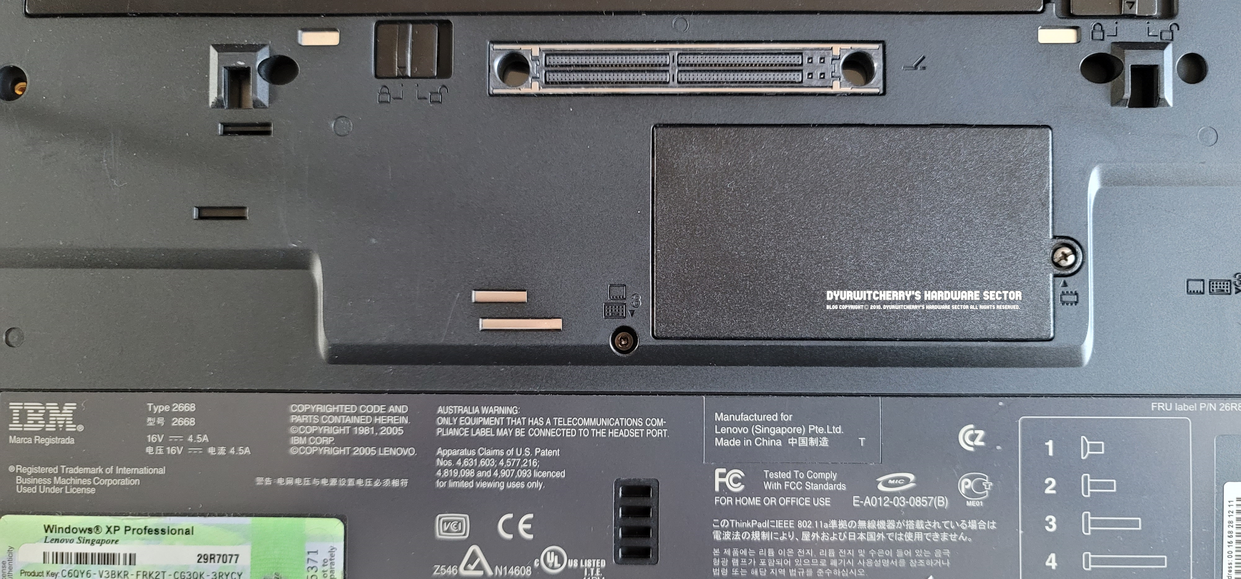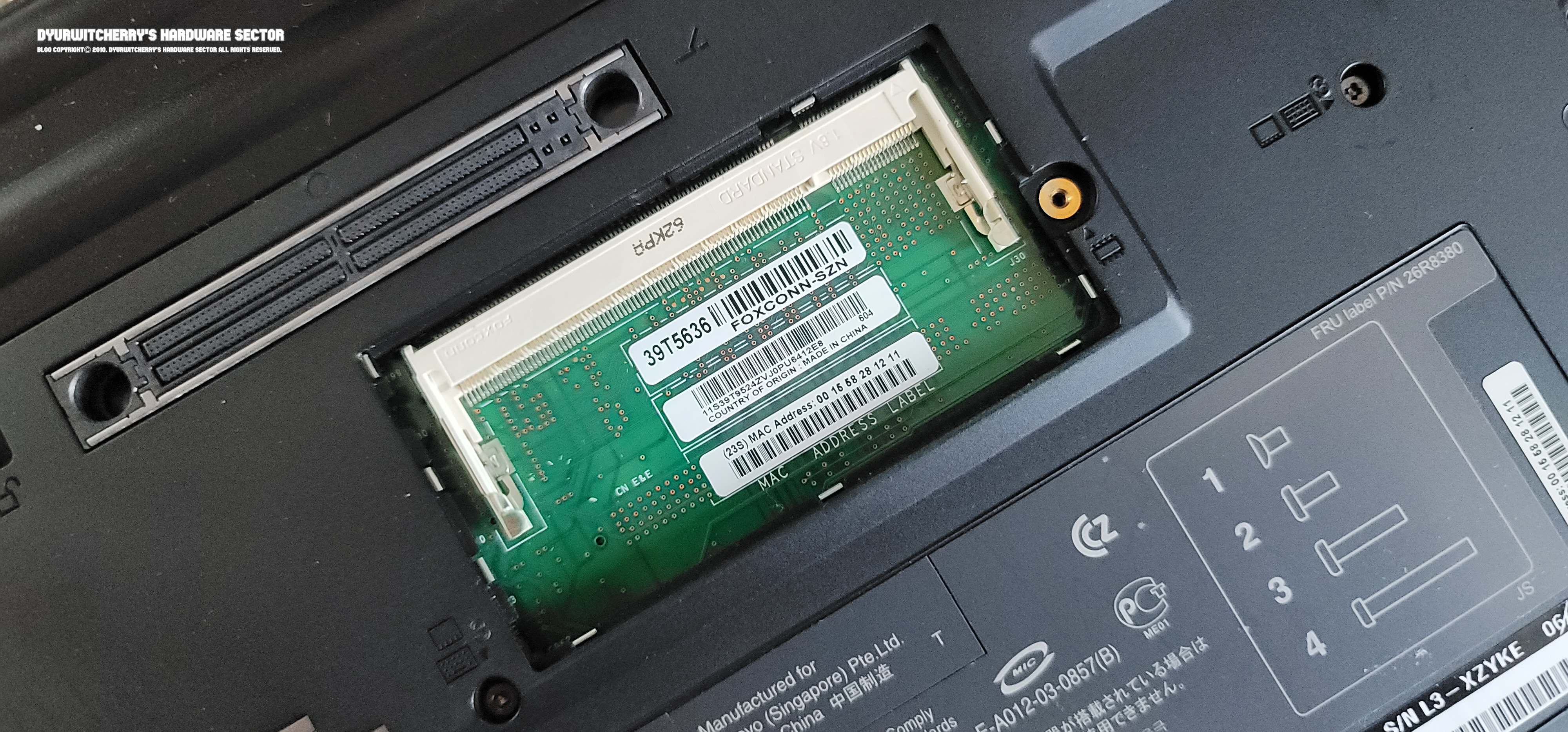 노트북 메모리를 분리하면 FOXCONN 200-Pin SO-DIMM 슬롯을 확인 할 수 있는데, IBM ThinkPad T43 Notebook의 경우 DDR2 256MB 또는 512MB 메모리가 온보드 형태로 장착되어 있어 RAM을 분리한 상태에서도 기본 메모리를 이용하여 노트북 부팅 및 윈도우 시스템을 사용할 수 있습니다.