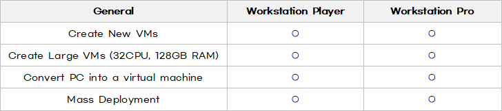 *VMware Workstation Pro 버전과 VMware Workstation Player 버전 비교