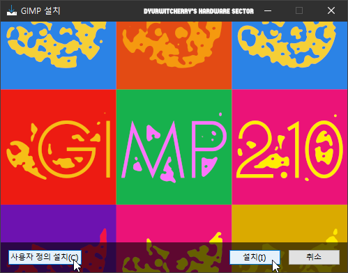 GIMP 설치 창이 활성화 되면 좌측 하단의 '사용자 정의 설치(C)'와 '설치(I)' 중에서 선택할 수 있으며, 포스팅에 김프 설치하는 방법은 관리자 권한에서 모든 사용자용의 사용자 정의 설치 방법 입니다.