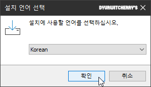 모든 사용자용 또는 현재 사용자용 중에서 선택 하면 한글 윈도우에서는 '설치 언어 선택'의 '설치에 사용할 언어를 선택하십시오.' 하단에 'Korean ∨'으로 지정되어 있으며 '확인' 버튼을 누르면 설치 방법 선택 화면이 활성화 됩니다.