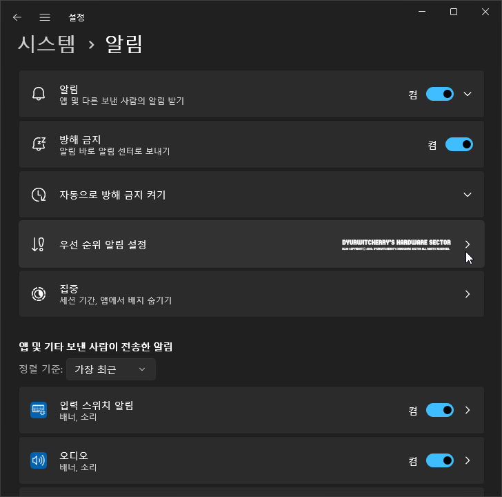*윈도우 11 사용 앱에 관계없이 미리 알림 표시 설정 해제하는 방법