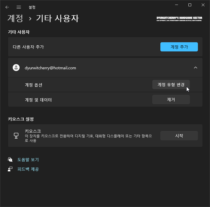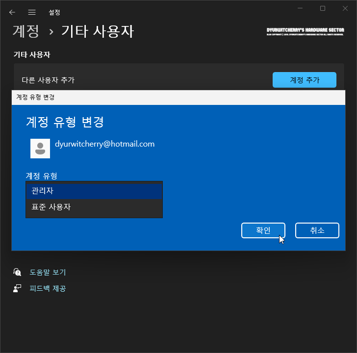 *윈도우 11 추가한 사용자 계정 관리자 계정으로 변경하는 방법