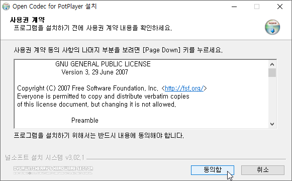 PotPlayer 1.7.18958 버전에서 '☑ 추가 코덱(OpenCodec) 설치' 체크 후 '닫음' 버튼을 클릭하면 'OpenCodec for PotPlayer 설치' 창이 활성화 되며 '동의함'을 선택하면 구성요소 선택 단계가 진행 됩니다.