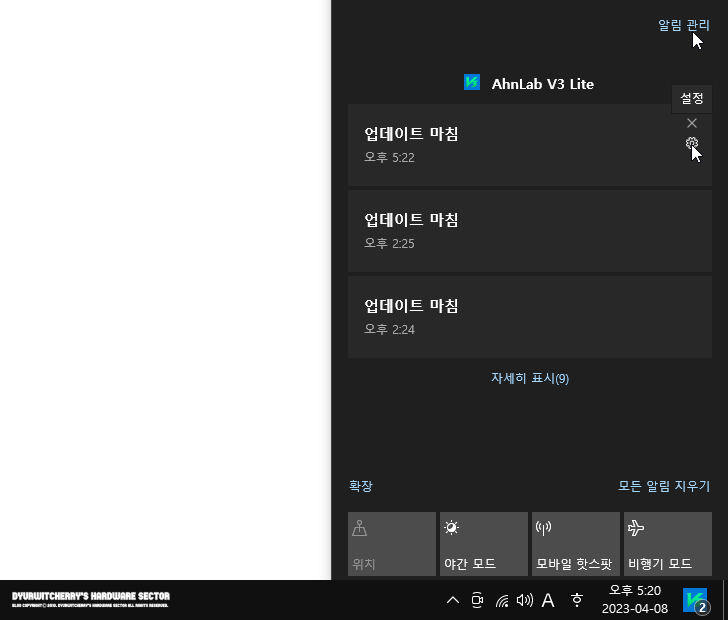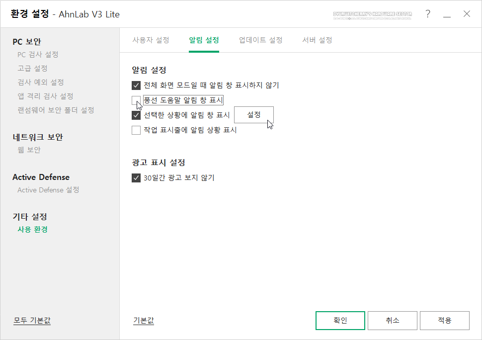 *AhnLab V3 Lite 알림 창 표시 설정 및 해제하는 방법