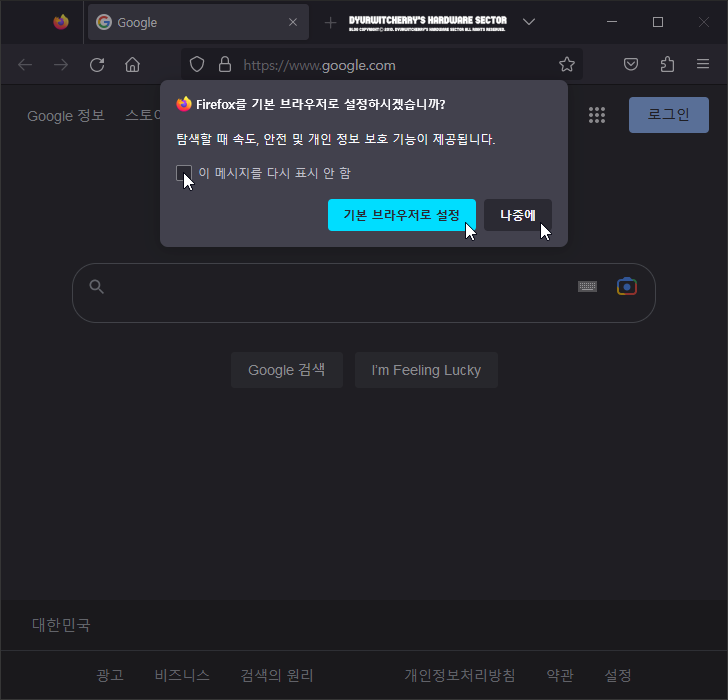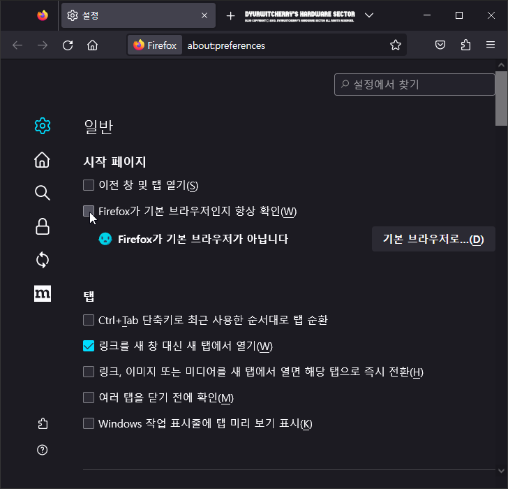 *파이어폭스가 기본 브라우저인지 항상 확인 설정 해제하는 방법