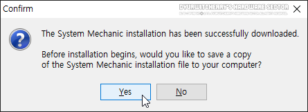 다운로드가 완료 되면 'Calculating ETA... (56.83MB of 56.83MB)' 표시와 함께 'Confirm', '? The System Mechanic installation has been successfully downloaded.' 창이 활성화 되며 'Yes' 버튼을 누르면 파일 크기 약 56.83MB인 설치 파일 'System Mechanic Installer.exe'가 다운로드 됩니다. 참고로, 아이올로 다운로드 매니저에서 설치 파일이 정상적으로 다운로드 되지 않는 경우에는 아래 첨부 파일을 다운로드 받아 사용하면 됩니다.