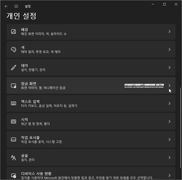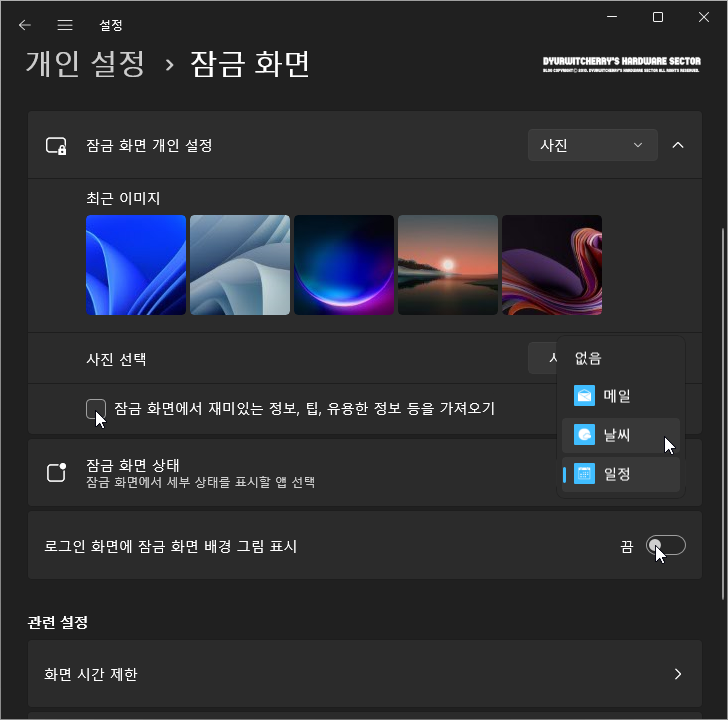 *윈도우 11 잠금 화면에 표시되는 내용 설정 및 변경하는 방법