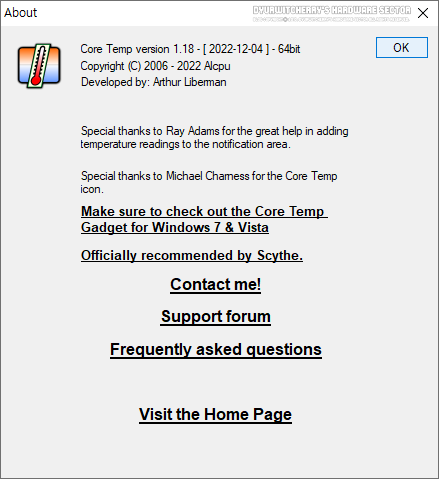 컴퓨터 CPU 온도측정 프로그램 CoreTemp는 Intel과 AMD 및 VIA x86 프로세서의 온도를 설정에 따라 섭씨(℃)와 화씨(℉) 단위의 온도로 표시하고, 전력(w) 소비량 등을 실시간으로 모니터링 할 수 있는 프로그램으로, 무료로 사용할 수 있는 프리웨어로 배포되고 있습니다. 코어 템프는 윈도우 시스템 트레이 영역에서 프로세서의 코어별 온도 표시와 함께 과열 보호 기능, 인텔 드라이버와 바이오스 업데이트, 프로그램 자체 화면 캡처 기능 등이 포함되어 있으며, 포스팅 작성일 기준 최신 버전은 2022년 12월 04월 릴리즈 된 Core Temp 1.18 버전 입니다.