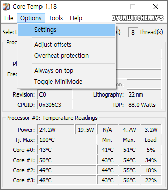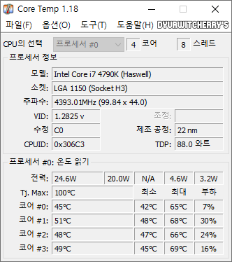 *Core Temp 한글판으로 언어설정 변경하는 방법