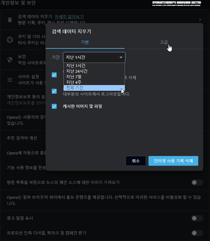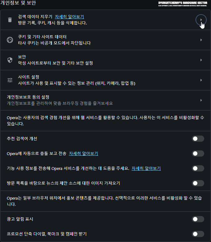 2. 오페라 브라우저 검색 데이터 지우기