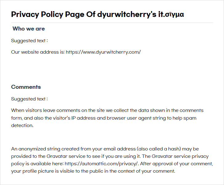 구글 애드센스 GDPR 개인정보처리방침 : Privacy Policy 메시지는 위 코드 블록에 작성해 놓은 3개의 웹 사이트 중 첫번째 사이트의 'privacy-policy'를 인용한 것으로, 사업자 정보가 있는 사이트나 블로그의 경우에는 두번째 사이트를 참조하여 상호명과 주소, 전화번호와 이메일, 사업자 등록번호와 연락처 정보를 추가하면 됩니다.